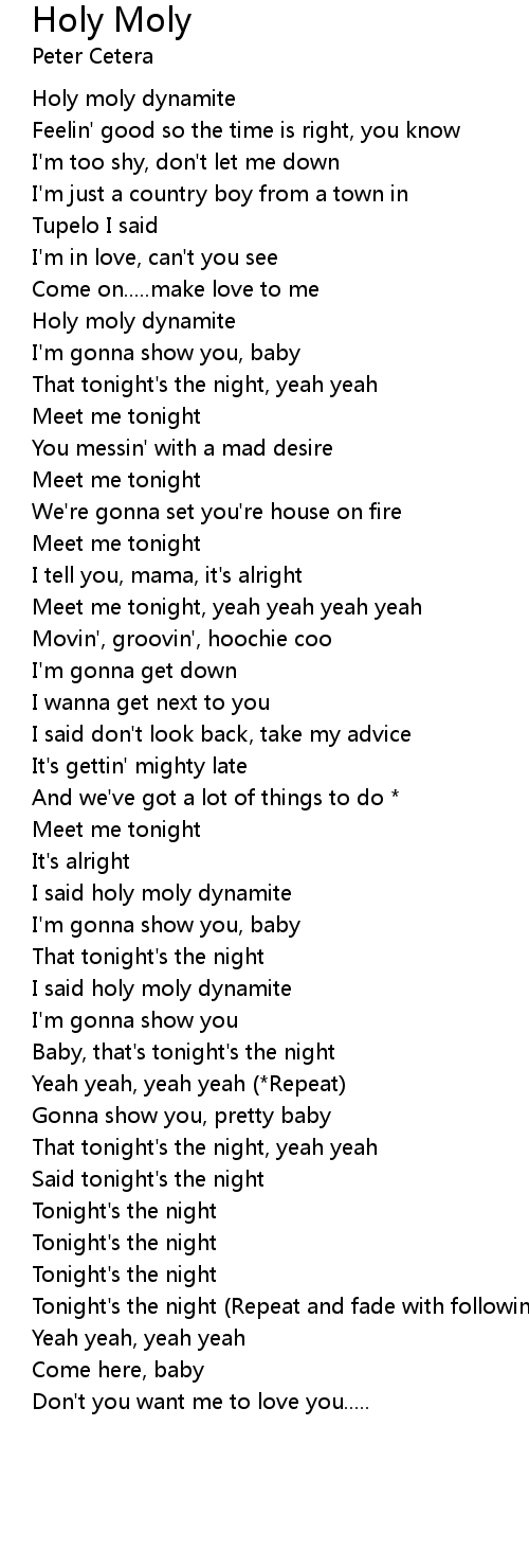 I said holy moly dynamite |