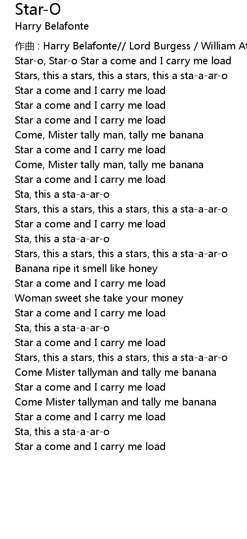 | Star-o, Star-o Star a come and I carry me load | |