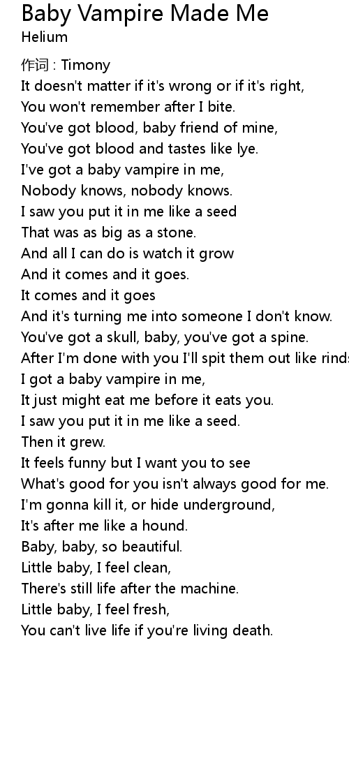| I got a baby vampire in me, | |