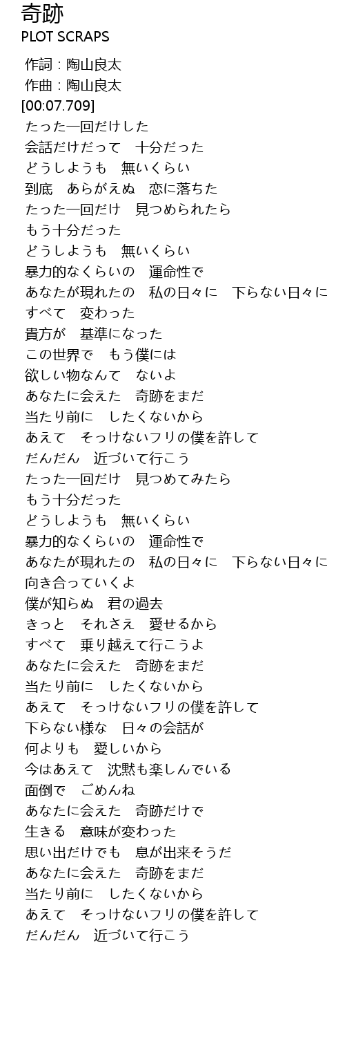 | [02:20.148] | あなたに会えた 奇跡をまだ |