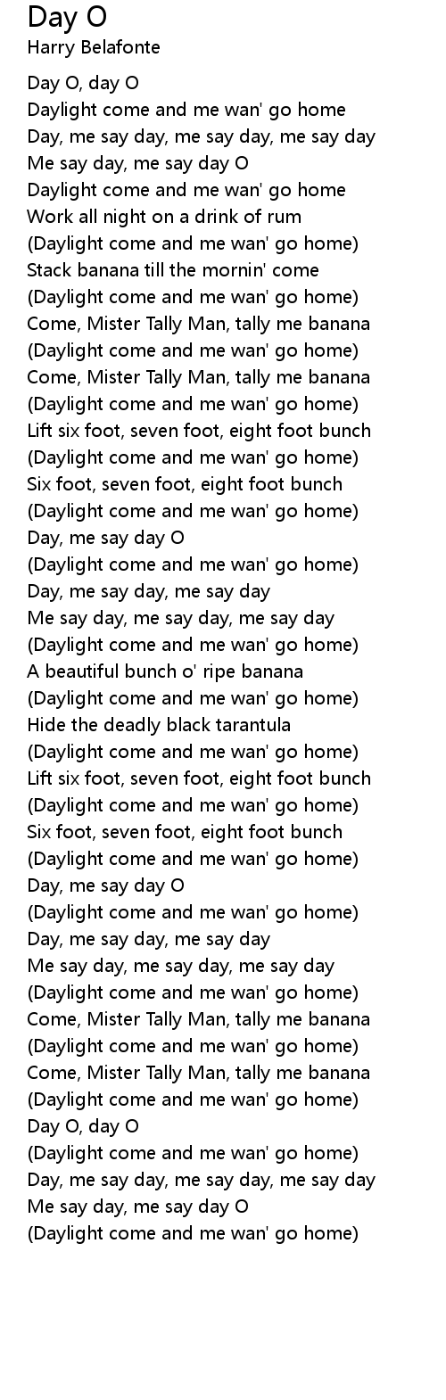 (Daylight come and me wan' go home) |