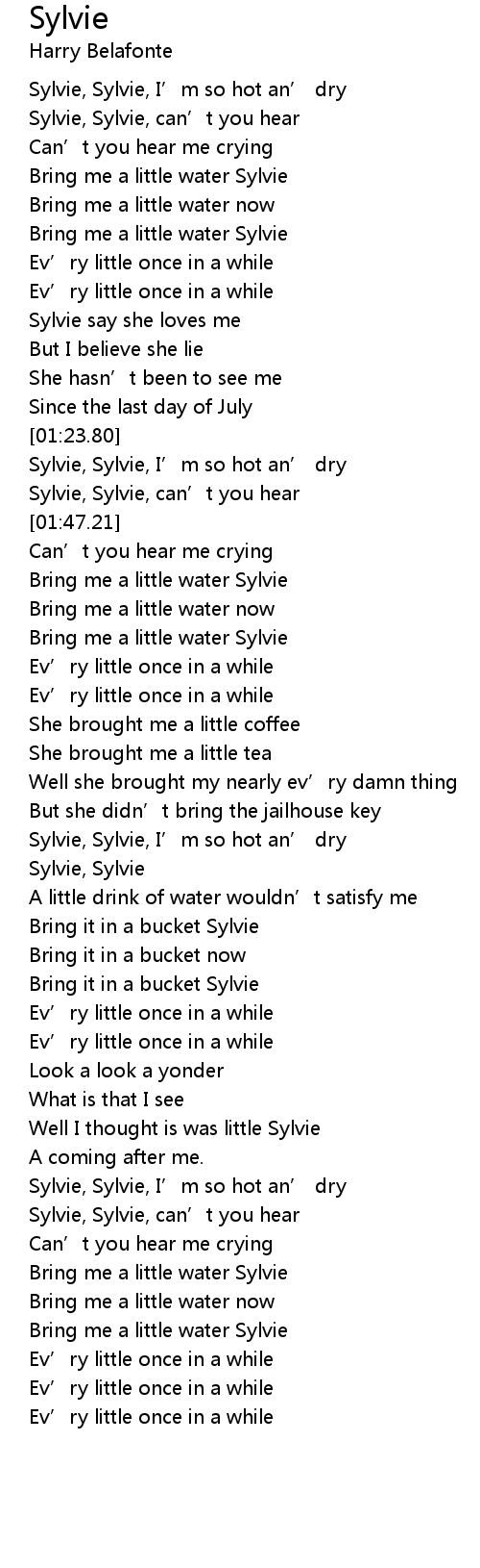 | [02:43.43] | Sylvie, Sylvie, I’m so hot an’ dry |