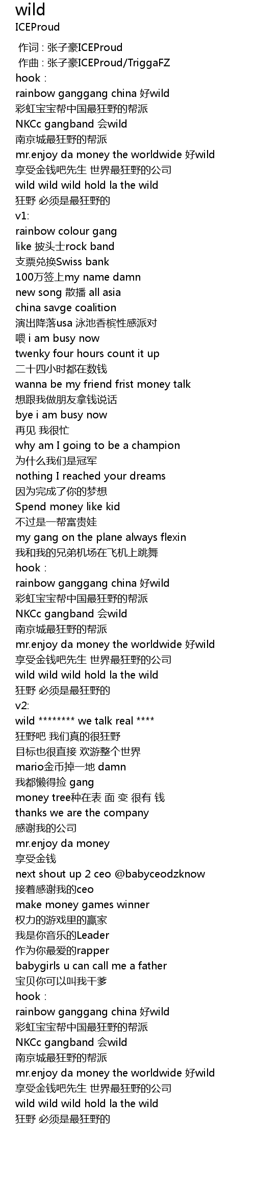 | [00:01.449] | rainbow ganggang china hǎo wild |