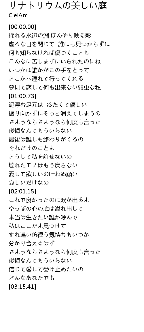 | Song | サナトリウムの美しい庭 |