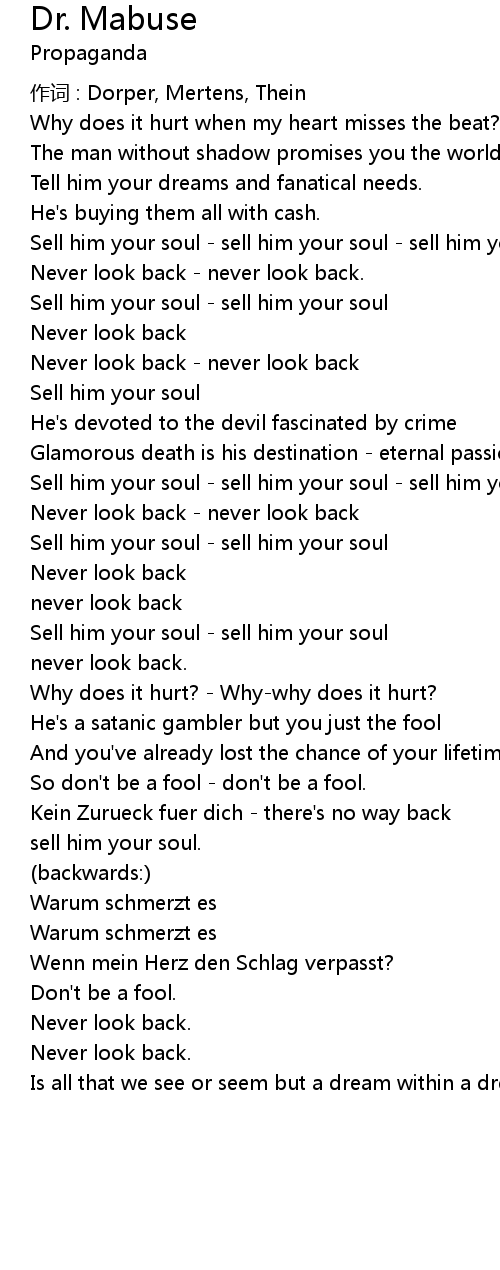 | Song | Dr. Mabuse |