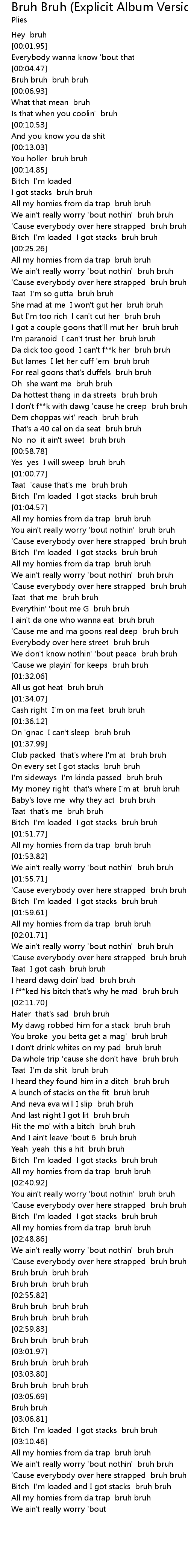 We ain't really worry 'bout nothin' bruh bruh |