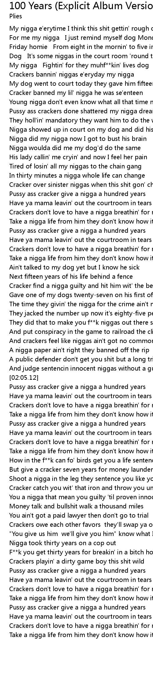 Pussy ass cracker give a nigga a hundred years |