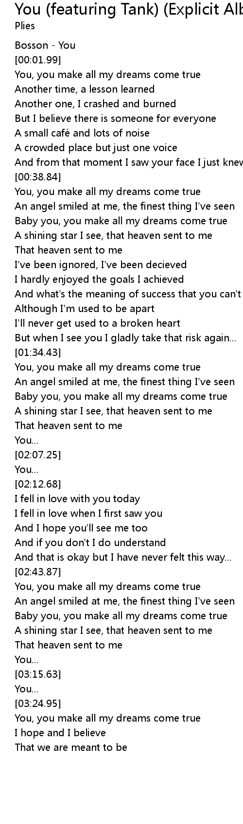 | [00:04.85] | You, you make all my dreams come true |