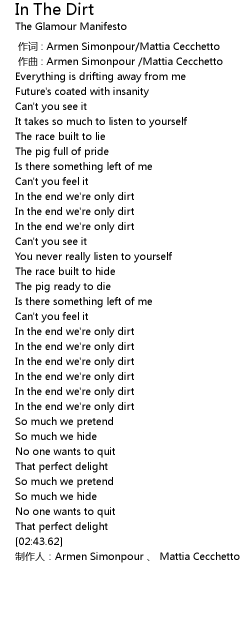 | [01:45.91] | In the end we' re only dirt |