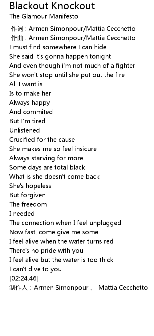 | [02:25.46] | 制作人:Armen Simonpour 、 Mattia Cecchetto |
