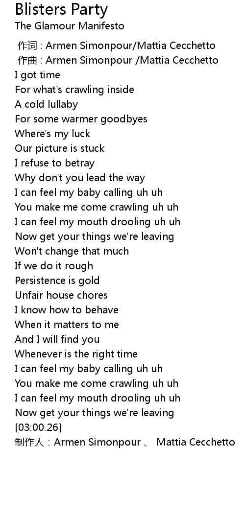 | [00:00.000] | zuò cí : Armen Simonpour Mattia Cecchetto |