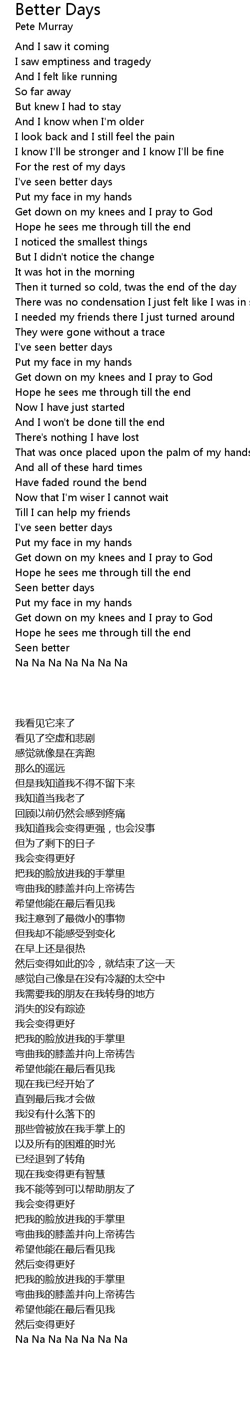 Hope he sees me through till the end |