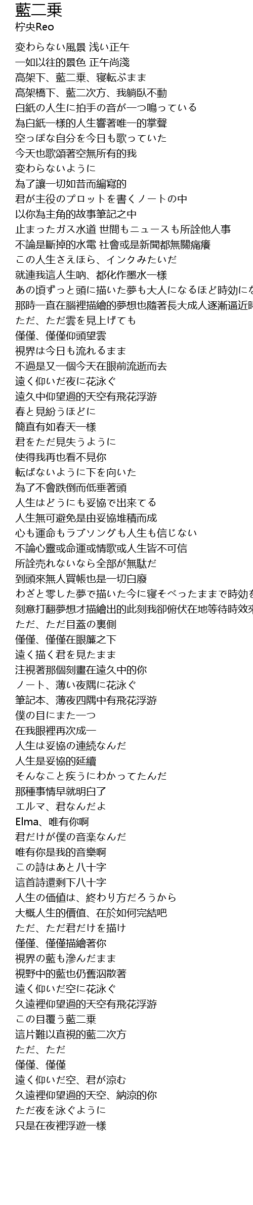 | [02:40.811] | Elma、唯有你啊 |