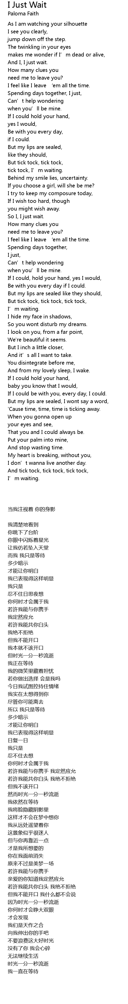 | Song | I Just Wait |