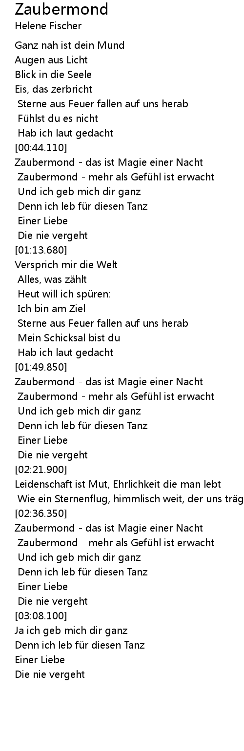 | [01:58.880] | Zaubermond - mehr als Gefühl ist erwacht |
