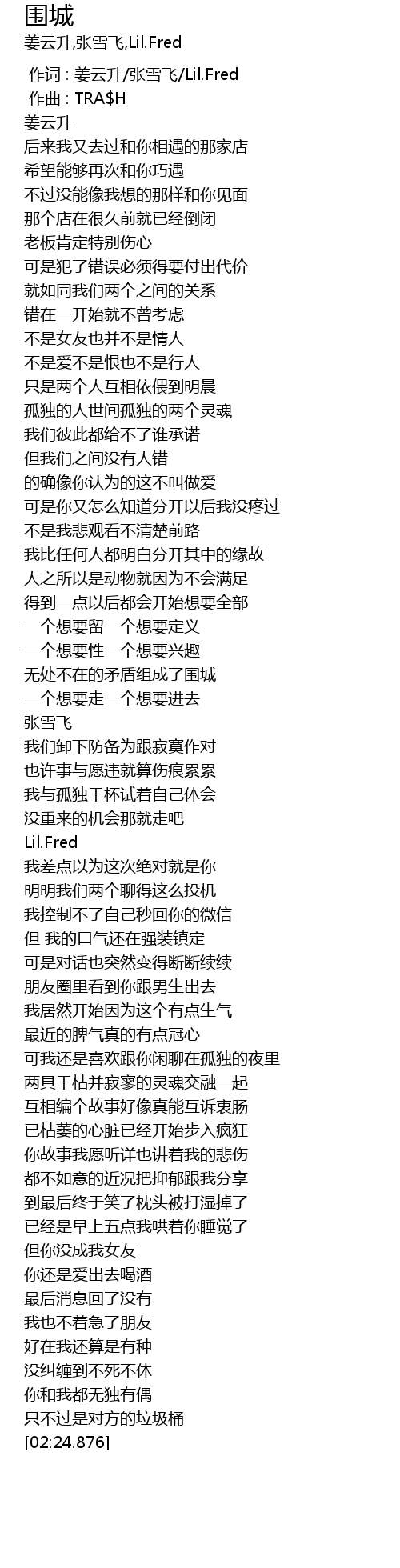 | [00:00.000] | 作词 : 姜云升/张雪飞/Lil.Fred |