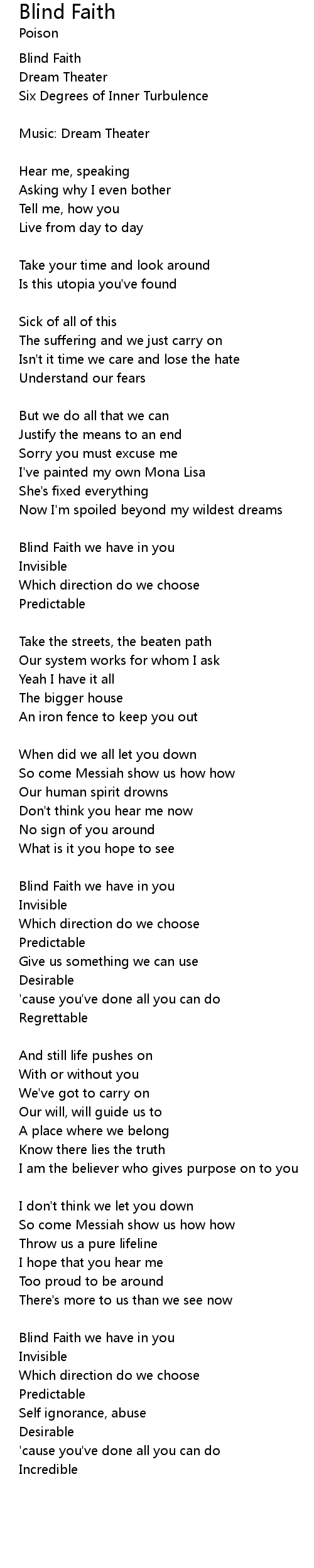 Blind Faith we have in you |