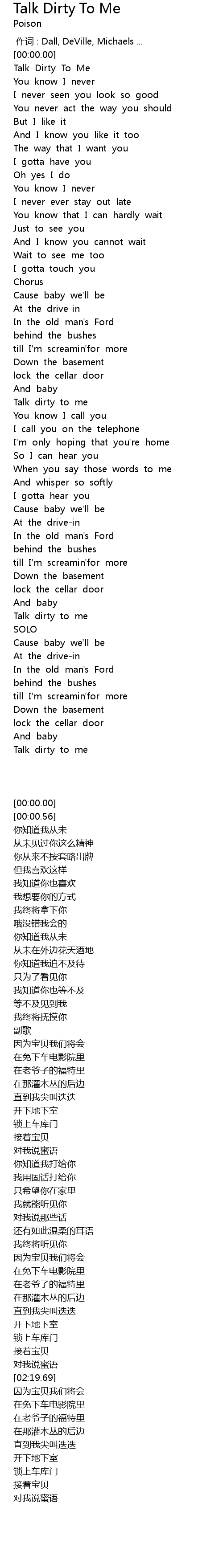 | [02:15.76] | Talk dirty to me |