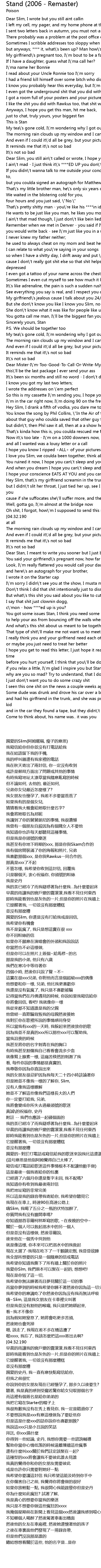 Dear Slim, you still ain\'t called or wrote, I hope you have a chance |