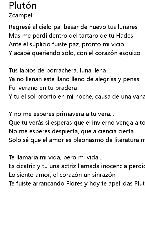 | Te fuiste arrancando Flores y hoy te apellidas Pluto n. |