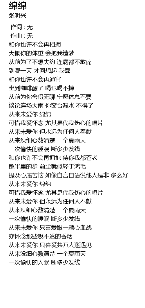 | [02:43.205] | 从来未爱你 绵绵 |
