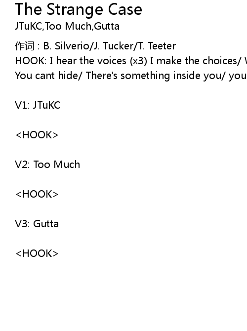 | HOOK: I hear the voices (x3) I make the choices/ Way deep inside/ of your mind/ You cant hide/ There's something inside you/ you cant control | |