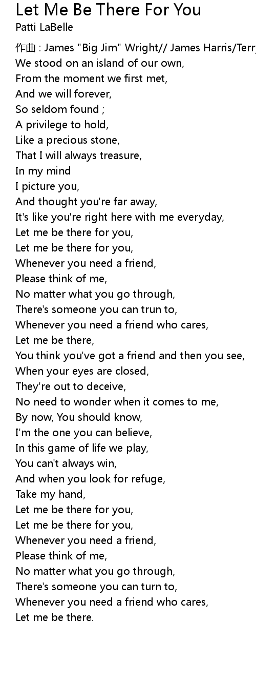 | Let me be there for you, | |