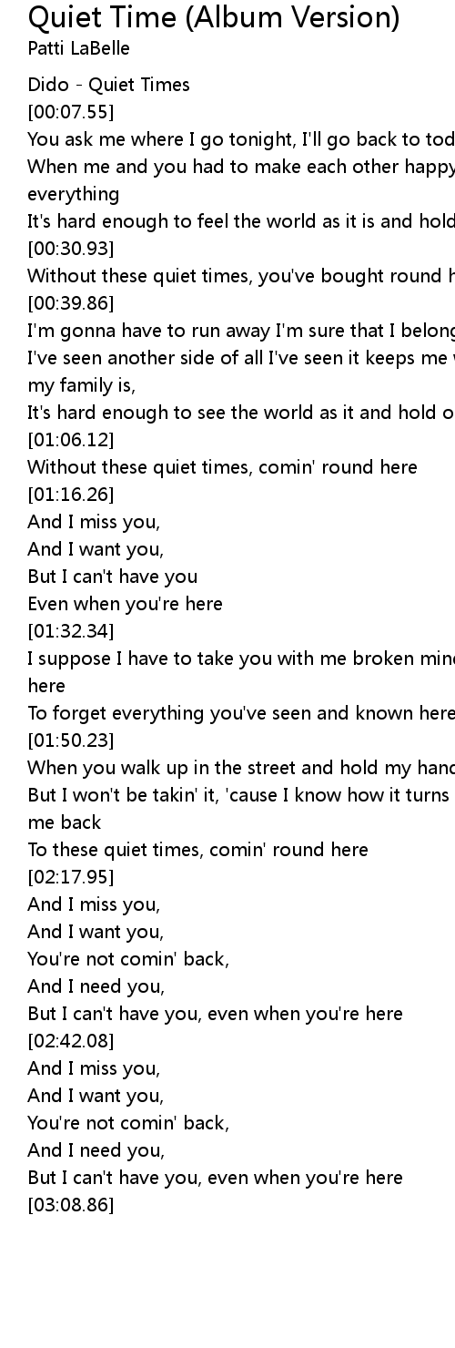 | [00:33.78] | Without these quiet times, you' ve bought round here |