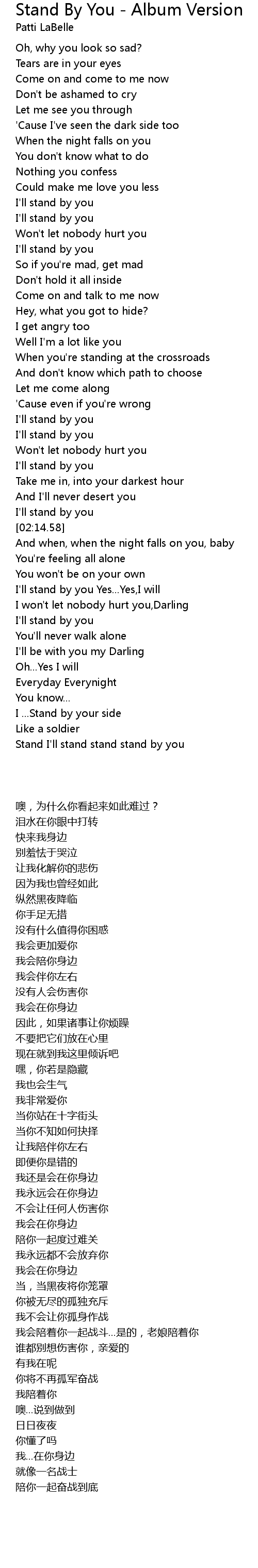 I'll stand by you Yes...Yes,I will |