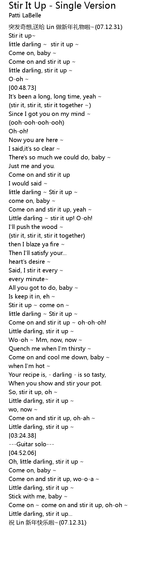 | [01:15.92] | Come on and stir it up |