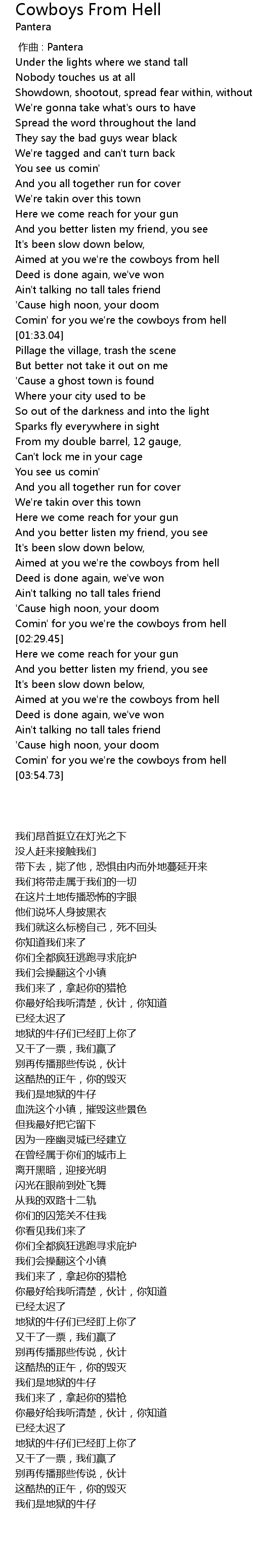 | [01:31.02] | Comin' for you we're the cowboys from hell |