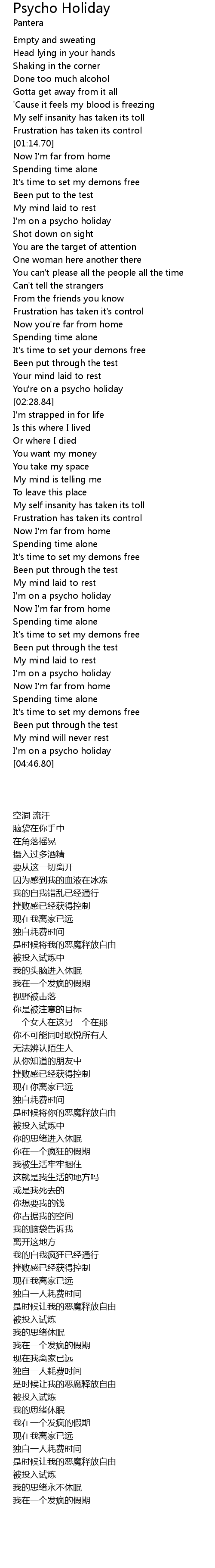 I'm on a psycho holiday |