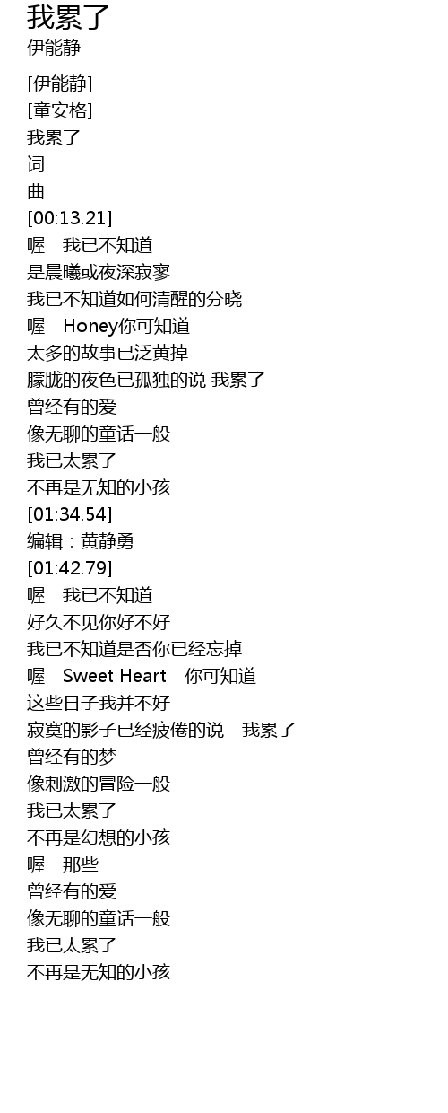 | [03:28.57] | 我已太累了 |