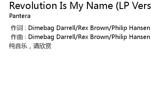 | [00:01.000] | zuo qu : Dimebag Darrell Rex Brown Philip Hansen Anselmo Vinnie Paul |