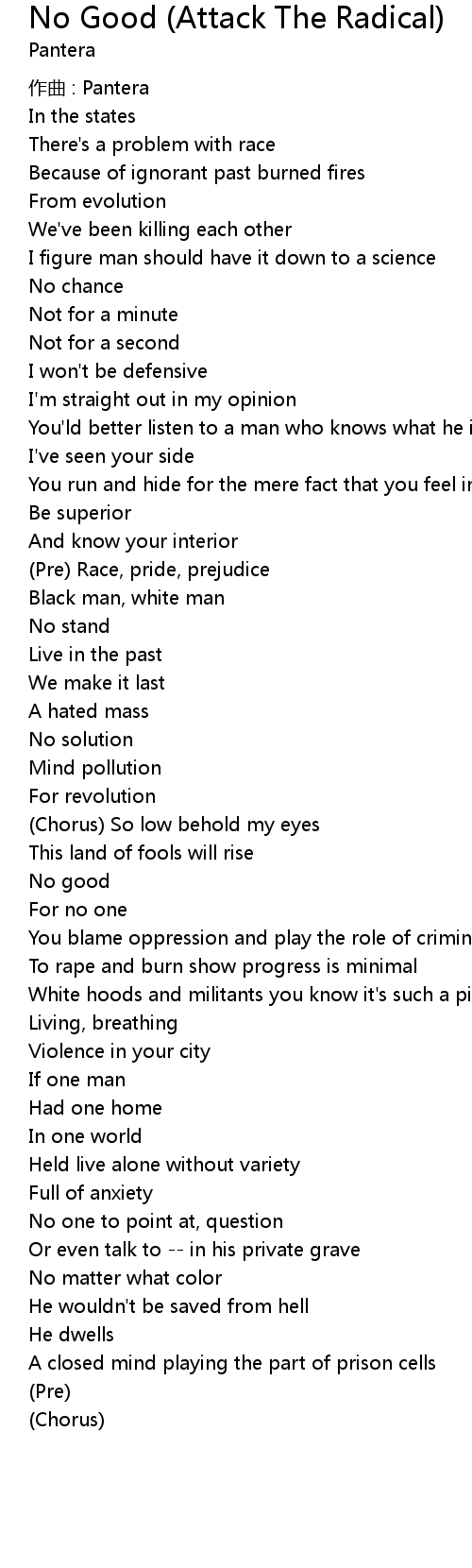 | Song | No Good (Attack The Radical) |