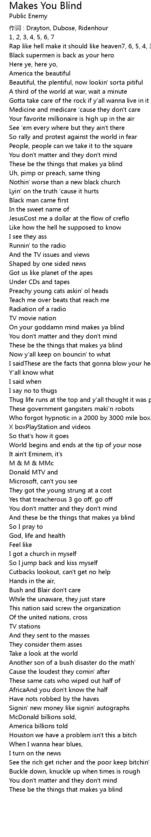 | 作词 : Drayton, Dubose, Ridenhour | |
