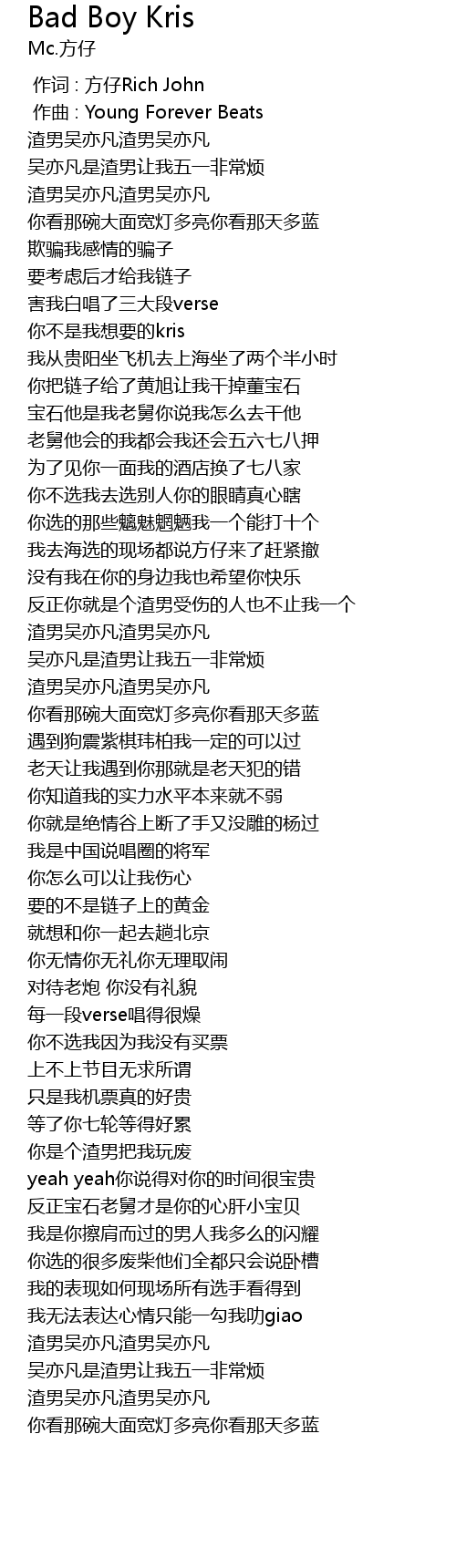 | [02:44.882] | 渣男吴亦凡渣男吴亦凡 |