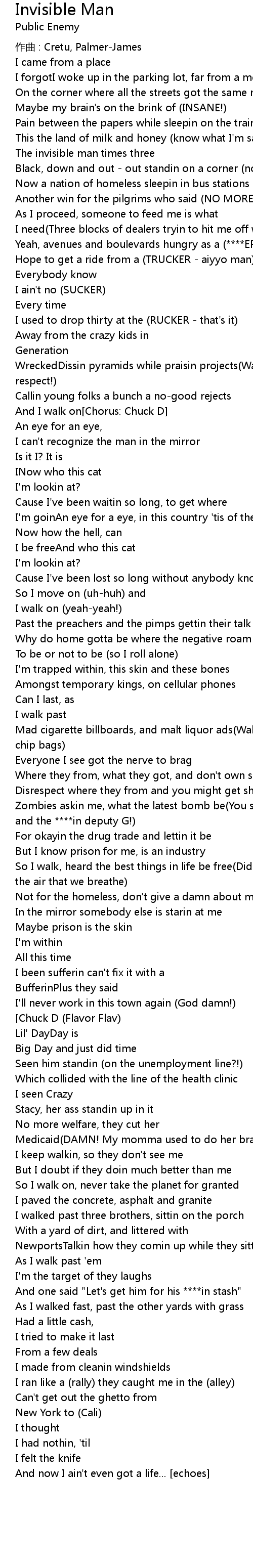 | Cause I' ve been lost so long without anybody knowin Chuck D Flavor Flav | |