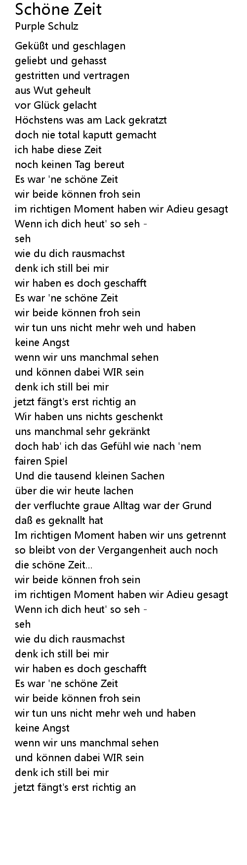 | doch hab' ich das Gefühl wie nach 'nem | |