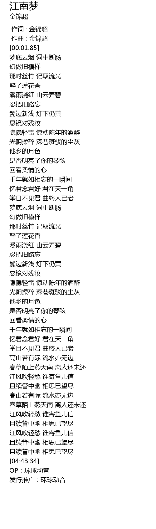 | [00:00.542] | zuò qǔ : jīn jǐn chāo |