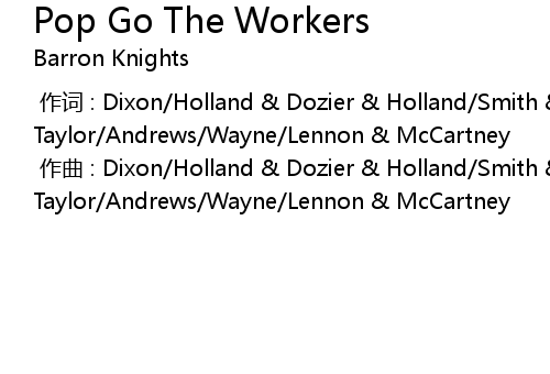 | [00:00.000] | 作曲 : Dixon/Holland & Dozier & Holland/Smith & Kirk & Taylor/Andrews/Wayne/Lennon & McCartney |