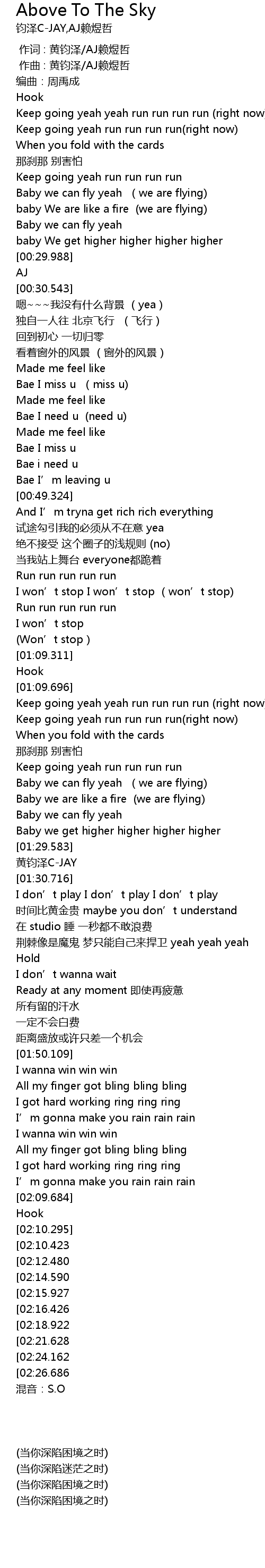 | [01:30.519] | 黄钧泽C-JAY |