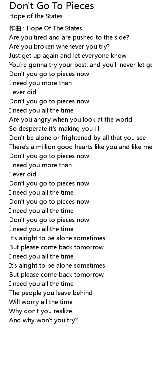 | Don't you go to pieces now | |
