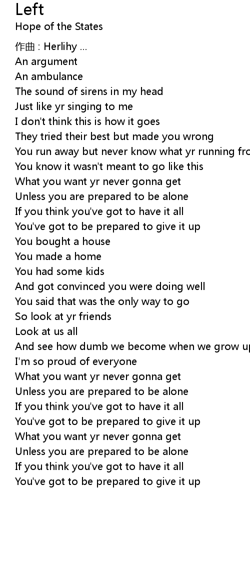 | Song | Left |