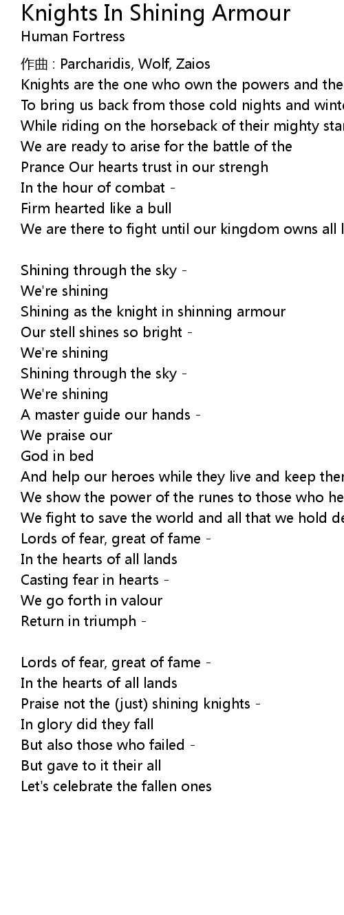 | Song | Knights In Shining Armour |