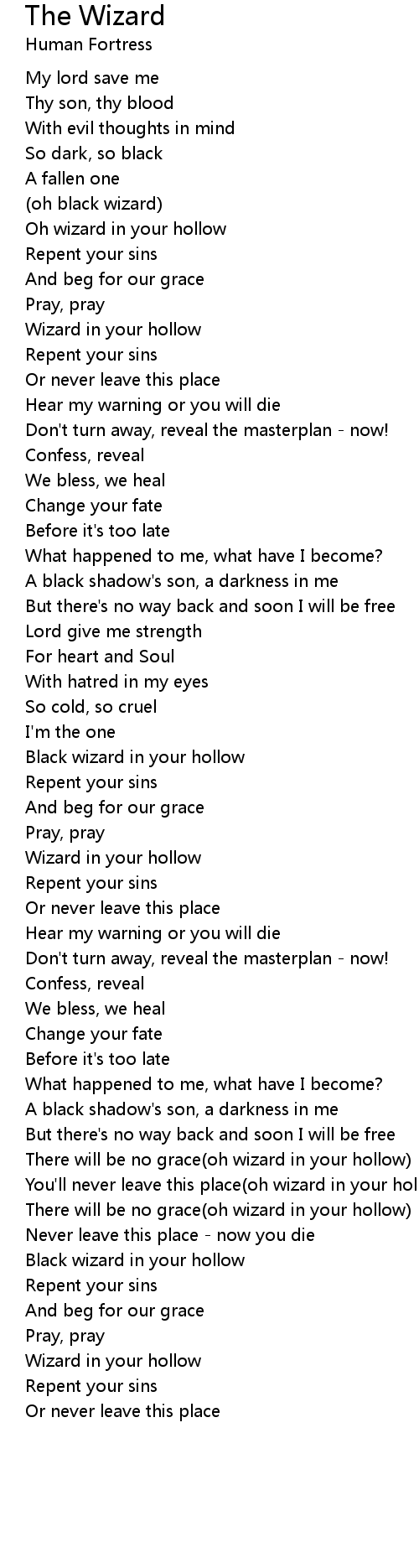 There will be no grace(oh wizard in your hollow) |