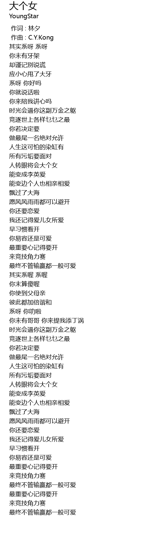 | Song | 大个女 |
