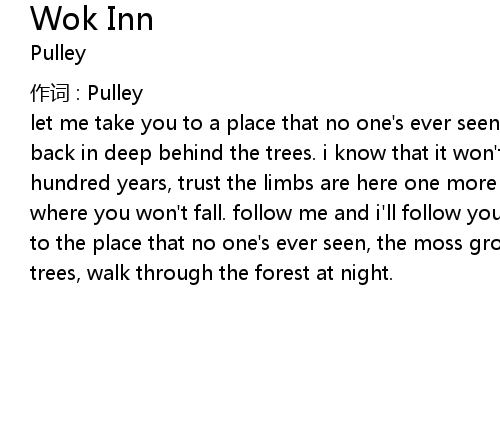 | let me take you to a place that no one' s ever seen. it' s so far it' s far away back in deep behind the trees. i know that it won' t fall it' s been there a hundred years, trust the limbs are here one more time. i' m telling you, walk where you won' t fall. follow me and i' ll follow you, i want to take you there. to the place that no one' s ever seen, the moss grows on the north side of the trees, walk through the forest at night. |