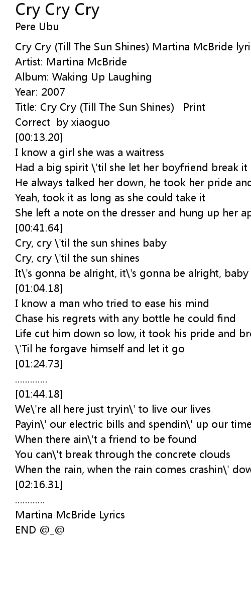 [00:01.18] Cry Cry (Till The Sun Shines) Martina McBride lyrics
