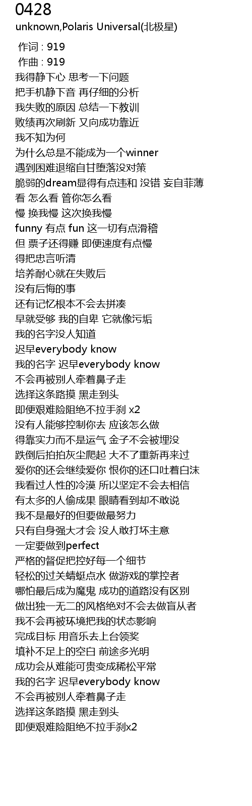 | [00:26.170] | wei shi me zong shi bu neng cheng wei yi ge winner |